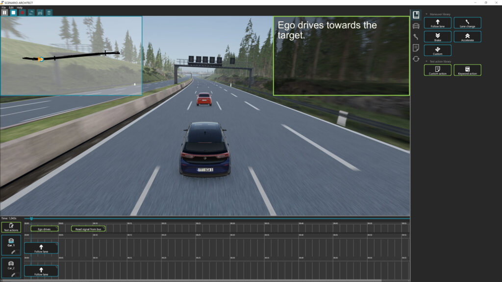 scenario.architectは、運転シナリオの反復型開発のためのtracetronic社の新しいソリューションです。このツールを使用することで、追い越し、交通渋滞、危険箇所の走行など、多種多様な交通状況をシミュレートし、それらの状況下での車両の挙動まで簡単に再現することができます。