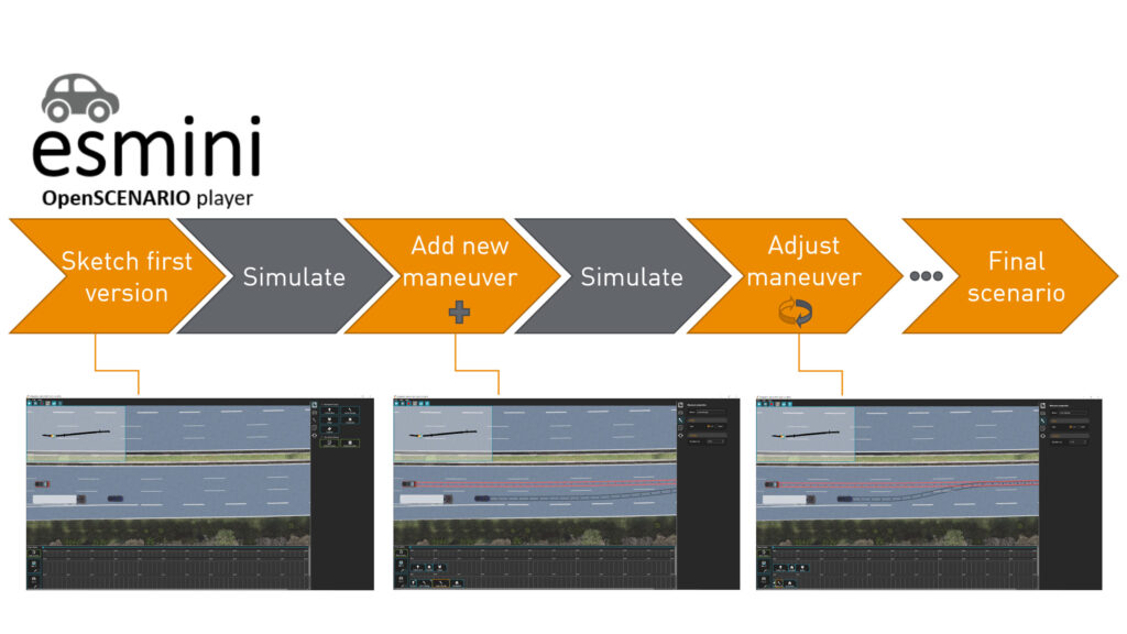 scenario.architectで作成されたすべてのシナリオは、オープンスタンダードであるOpenSCENARIO® 1.0および2.0形式でエクスポート可能です。